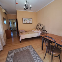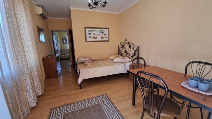 Однокомнатный 4-х местный с доп. местом, (детская кроватка за доп. плату), сплит система, мебель, хол., TV, с/у с душем, отдельный выход, на террасе стол со стульями, сушилка для белья.