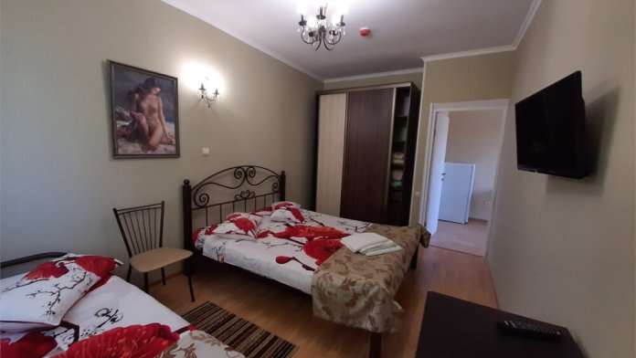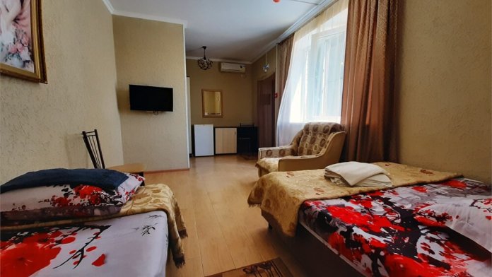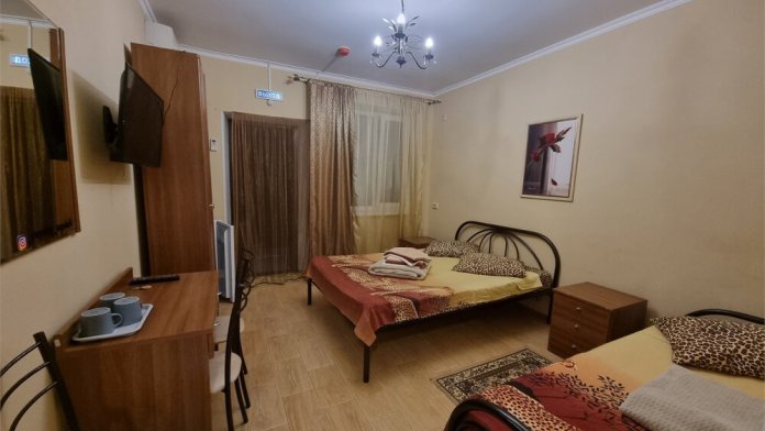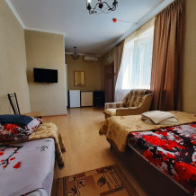 трехместный номер, 1 этаж, рядом с номером зона отдыха с мебелью, двуспальная кровать, односпальная кровать, хол., TV, сплит система, с/у с душем, мебель.