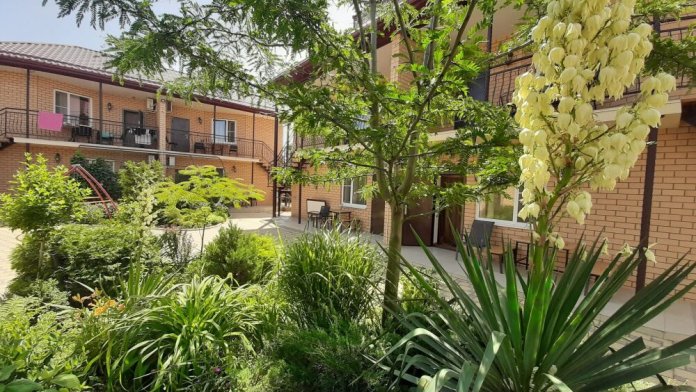 К услугам туристов бассейн 5 x 10 м. Уютное и тихое место, располагающее к отдыху. Шикарный благоустроенный двор, много цветов и зелени. Для детей оборудована детская площадка, имеется теннисный стол. Гостевой дом включает в себя три двухэтажных корпуса с благоустроенными номерами. Все номера имеют выход в уютный двор. Во всех номерах есть балконы или места для отдельного отдыха (стол со стульями, сушилка). Для маленьких туристов имеются детские кроватки. Уборка в номере и смена белья производятся 1 раз в неделю, полотенца меняются по желанию.