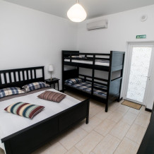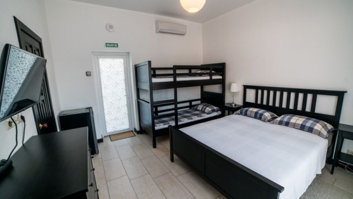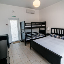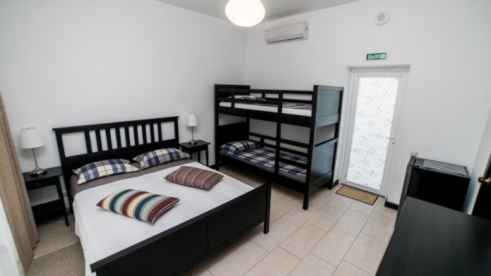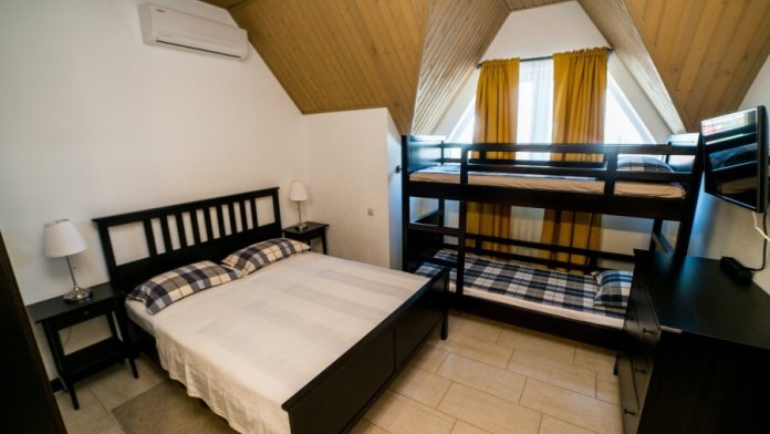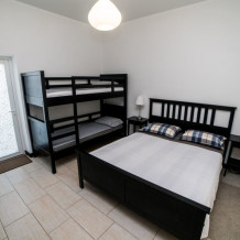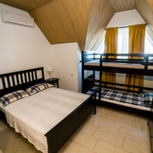 Уютный четырехместный семейный номер площадью 19 кв. м., с балконом-террасой, расположен на 1 этаже. Спальных мест 4: двуспальная кровать и двухъярусная кровать. Номер оборудован кондиционером (сплит-система), спутниковым телевидением, сейфом и мини-холодильником, имеет отдельный туалет и душ.