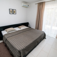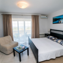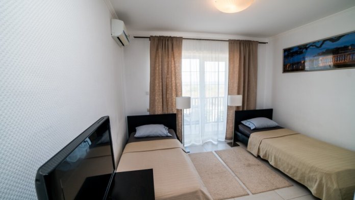 Уютный 2-местный номер с балконом, с прямым видом на море. Расположен на 2 этаже. Имеет 2-спальную кровать king-size. Номер оборудован кондиционером (сплит-система), спутниковым телевидением, сейфом и мини-холодильником, имеет отдельный туалет и душ.