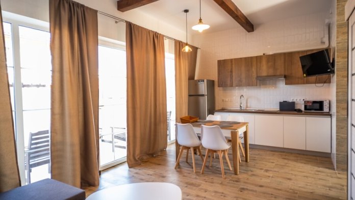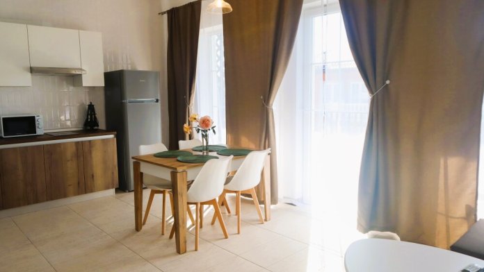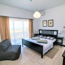 Просторные 3-комнатные апартаменты с полноценной кухней и балконом с прямым панорамным видом на море, имеют спальню, гостиную и кухню с обеденной зоной