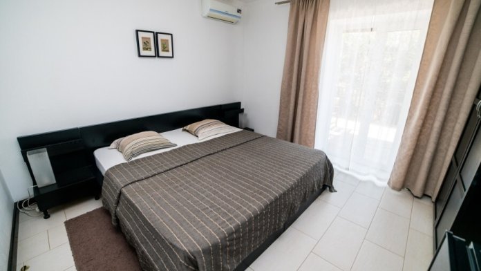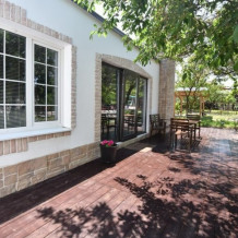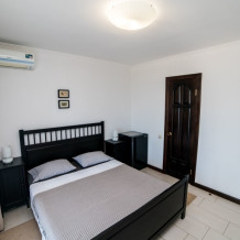 Комфортабельный четырехместный коттедж площадью 55 кв.м., расположен на закрытой территории гостевого дома, в глубине сада. Спальных мест 4: двуспальная кровать и 2 односпальных дивана-кровати. Одноэтажный коттедж-бунгало со всеми удобствами: кондиционером (сплит-системой), мини-кухней, камином, собственной дровяной сауной, ванной-джакузи, душем, отдельной террасой с зоной барбекю и садовой мебелью.