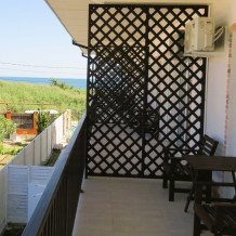 Уютный 3-местный номер с балконом и прямым панорамным видом на море, с двуспальной кроватью и кресло-кроватью, площадью 21м². Санузел: душевая кабина.
