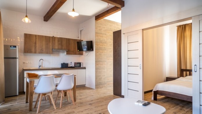 просторные 2-комнатные апартаменты с полноценной кухней и балконом с боковым видом на море, имеют спальню и гостиную с обеденной зоной