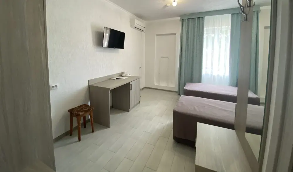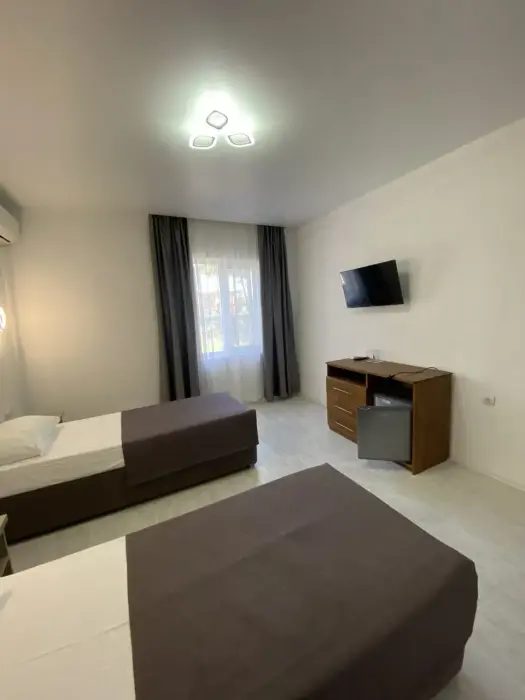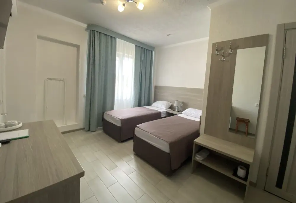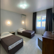 Номера имеют выход на террасу, с которой открывается восхитительный вид. Сплит-система контролирует климат в помещении, делая его комфортным для проживающих. Материалы отделки гипоаллергенные. В Вашем распоряжении будет персональная душевая комната.