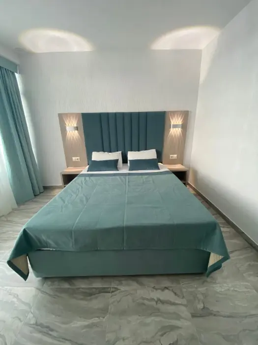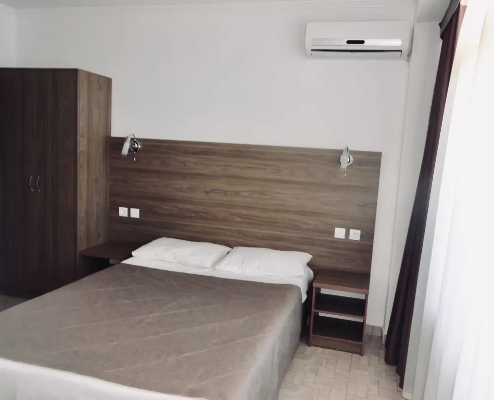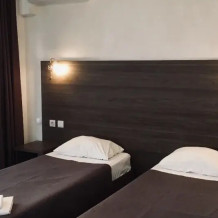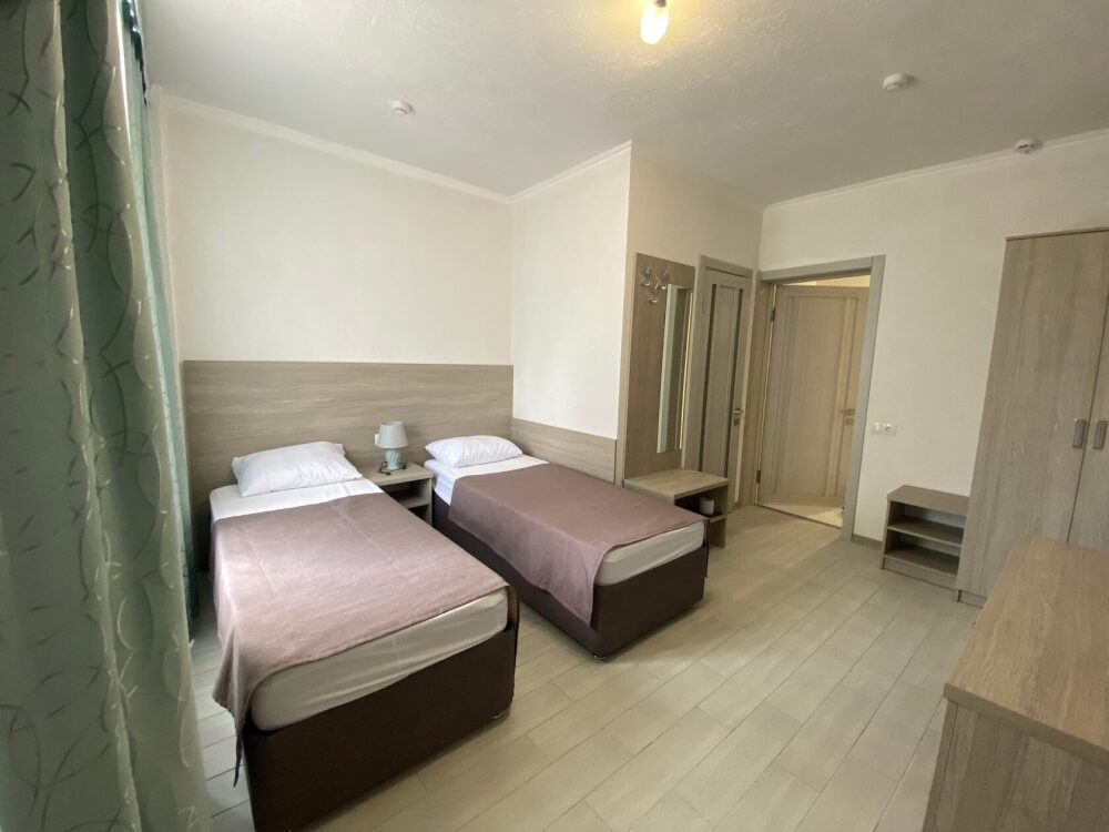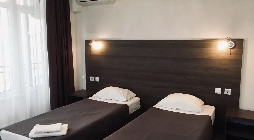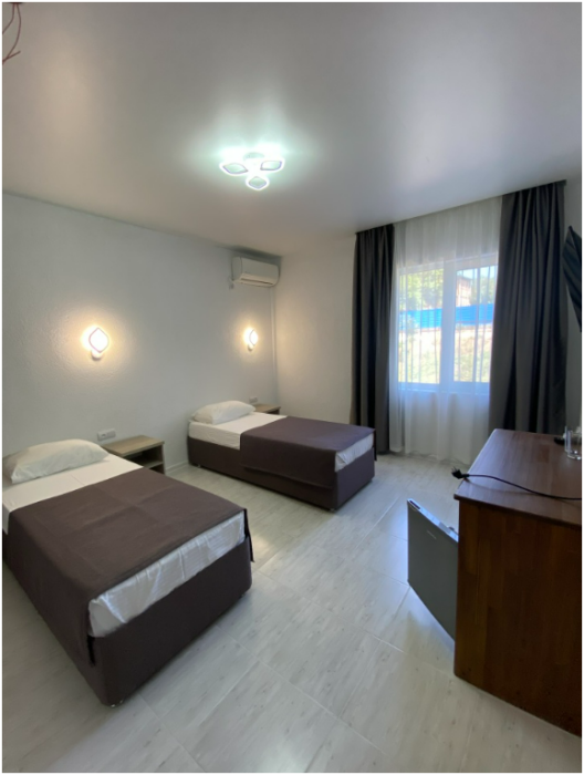 Номера располагаются на 2-3 этажах. Кровать двуспальная (ширина 131-150 см), есть номера с 2 отдельными кроватями. Полупансион