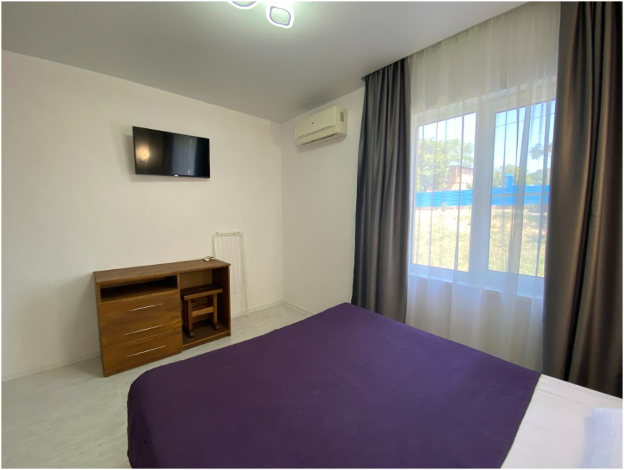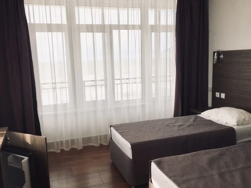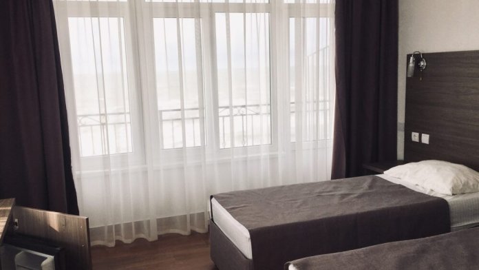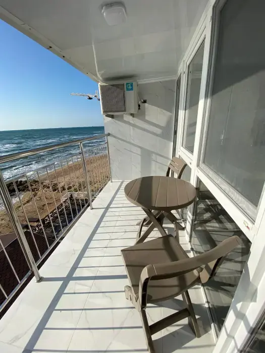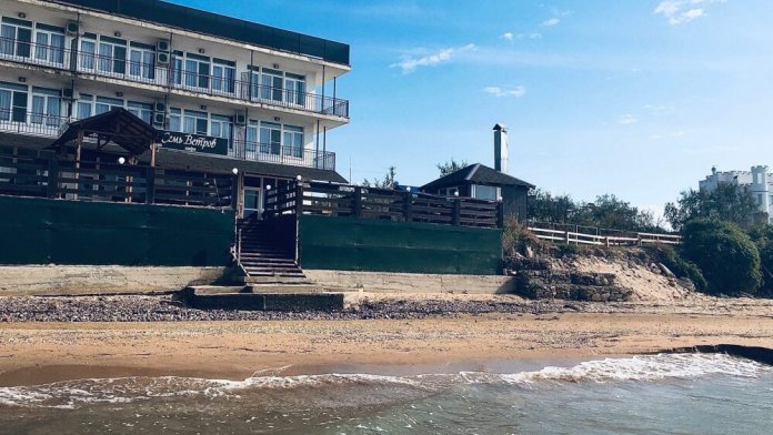 Отель «Семь Ветров» расположился на берегу Керченского пролива, на оборудованной пляжной зоне. Бескрайний голубой простор начинается прямо за дверью.