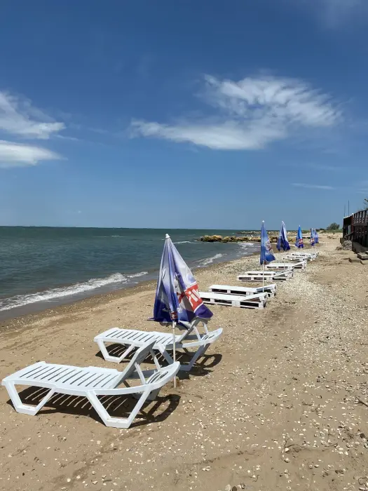 Пляж будет находится прямо напротив Вас. В десяти километрах будет песчаная коса Чушка с причалом, а напротив Крымский полуостров. Если вы еще не видели дельфинов, тогда приезжайте к нам.