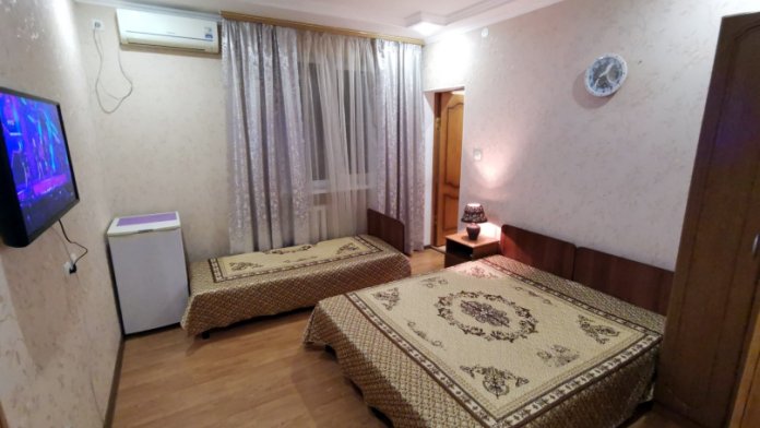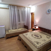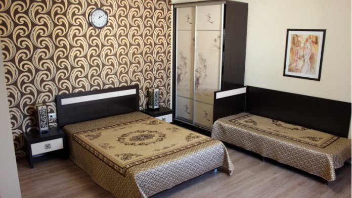 Предлагаем гостям для размещения однокомнатные комфортабельных номера со всеми удобствами. На большой территории двора: детская площадка с качелями, столики и лавочки для отдыха, беседка, мостик, фонтан и водопад. Для приготовления шашлыка оборудована мангальная зона.