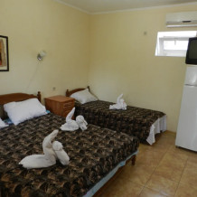 Для наших гостей мы предлагаем 2,3,4-местные, уютные номера со всеми удобствами. Большой холодильник, кондиционер, телевизор, душ, туалет. Предоставляются детские кровати до 4 лет.