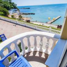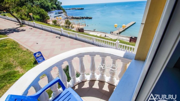Отель расположен непосредственно на набережной курорта в 30 метрах от пляжа с песчаным дном. Рядом находятся несколько кафе и столовых (одно из них в самом отеле).