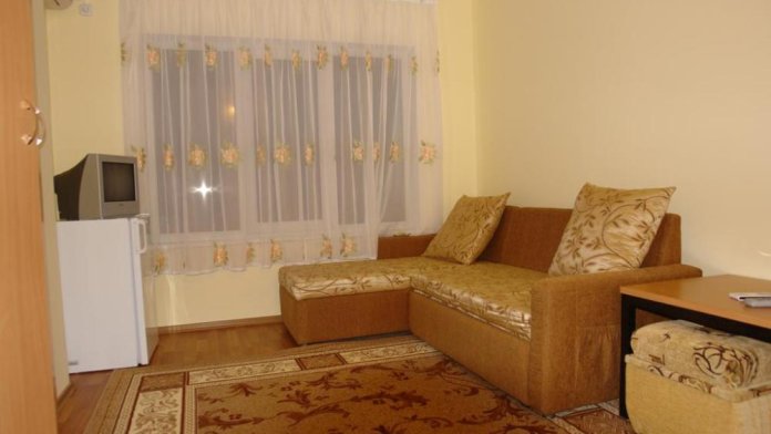 2 изолированные меблированные комната, 1я- диван и 2 кресла-кровати, 2-я- 2х спальная кровать, в каждой комнате холодильник,ТВ, кондиционер