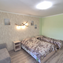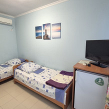 В нашем небольшом, уютном гостевом доме к Вашим услугам предоставляются 2-, 3-местные комнаты класса Стандарт с телевизором, сплит-системой, холодильником, санузлом и возможностью оборудования дополнительного места.