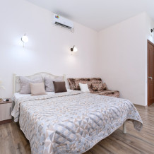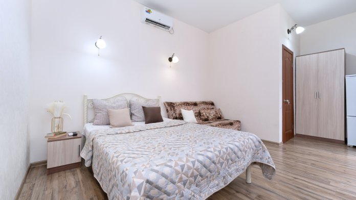 Номер состоит из 2 спален со сплит-системами, холлом с диваном-кроватью и телевизором , холодильником, в номере свой санузел, на большом балконе своя кухня и сушилка для белья.