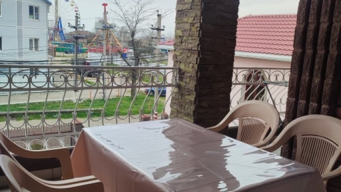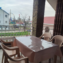 Номер состоит из двух спален со сплит-системами, холла с диваном-кроватью и телевизором, санузел в номере, на большом балконе своя кухня, холодильник, сушилка для белья.