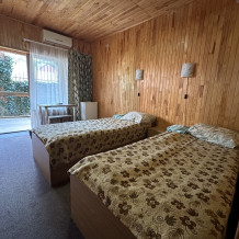 Однокомнатный двухместный номер. В номере две односпальные кровати с возможность размещения доп места (евро раскладушка). Номер со всеми удобствами (Душ, туалет, холодильник, телевизор, кондиционер, электро обогреватель)