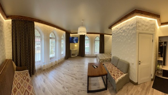 Предоставляем комнаты на 4-6 человек, санузел и душевая кабина в доме. Так же есть номера люкс на 2 человек. В просторном дворе есть беседки и чайхана, летний душ и бар с необходимыми напитками, мороженым, горными чаями, кальяном и восточными сладостями.