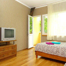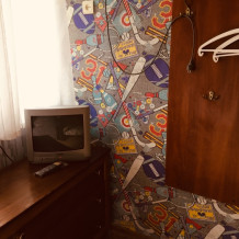 Уютный небольшой номер со своим отдельным входом , санузлом и верандой на которой расположена летняя кухня. В комнате - двухспальня кровать , комод и телевизор, есть кондиционер.