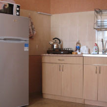 Номер с своим отдельным входом и верандой на которой расположена летняя кухня со всей необходимой посудой и столик. В комнате стоит две полноценных кровати двуспальная и односпальная, комод ,телевизор. Есть гладильная доска , фен и кондиционер.