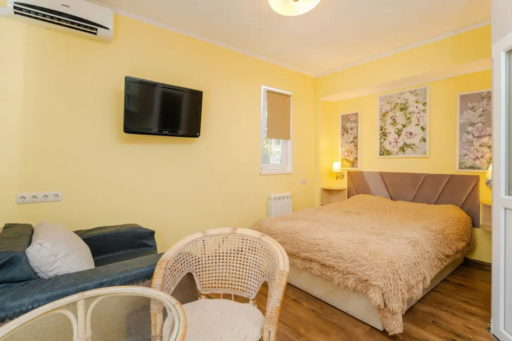 Гостевой дом находится в самом сердце Ялты, буквально в паре минут ходьбы от Массандровского пляжа — самого главного места отдыха на южном берегу Крыма. Наши гости имеют мгновенный доступ ко всем развлечениям исторического центра города, включая магазины, кафе, музеи и, конечно же, море. При этом сам дом спрятан от уличной суеты в тихом переулке и располагает собственным двориком, тенистым и уютным.