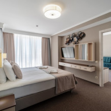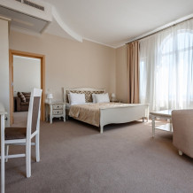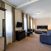 Просторный и комфортный номер с двумя спальнями и общей комнатой для отдыха подойдёт для большой семьи. Индивидуальный дизайн, изысканная мебель – отличительная черта всех номеров категории Премиум. Все номера имеют выход на балкон, который оснащен мебелью для отдыха.