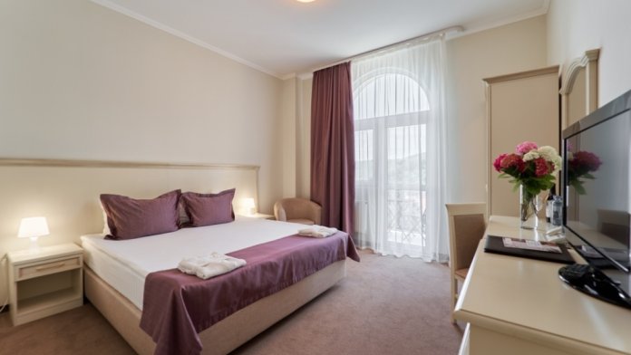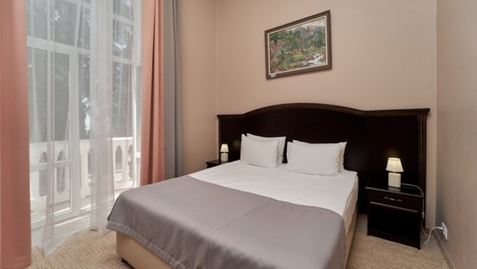 Расположение: Номера данной категории располагаются в премиум корпусах Филибер, Рахманинова, Шулейкина и Панеа. Вид: Парк, горы, море. Кровати: одна большая кровать. Ванная комната: душ.