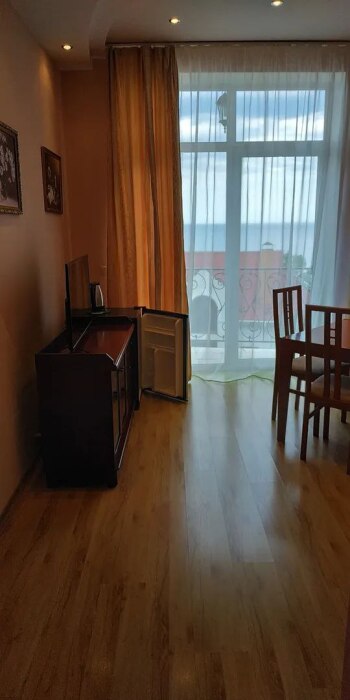 Видовой шикарный комфортный 1 комн. люкс подойдет как для романтиков так и для отдыха с детьми. Спальные места: 1 двуспальная кровать, 1 диван 1−2-мест. на усмотрение клиента. В номере есть сейф фен, чайник, посуда и весь набор полотенец. Терраса с видом на море и горы приятно вас удивит.