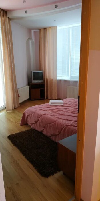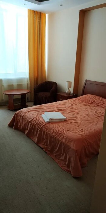 В номере двуспальная или две односпальные кровати. Также есть весь набор полотенец, халаты. Фен, электрочайник, посуда, Утюгом можно пользоваться в специально отведенном месте. Смарт ТВ.