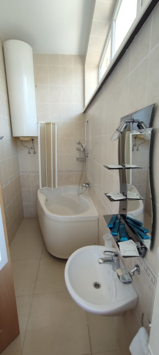 Круглосуточно осуществляется подача холодной и горячей воды. Апартаменты укомплектованы: полотенцами, халатами, тапочками, фенами. Также посудой и эл. чайником.