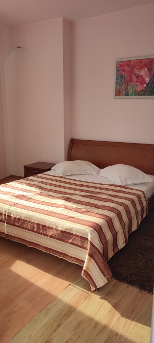 Просторный уютный 2-комнатный номер находиться в прохладной части виллы. Семье с детьми будет очень удобно сесть за большой стол. Все необходимое для комфортного отдыха. Полотенца халаты тапочки фен эл. чайник и посуда.