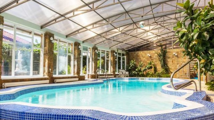 - бассейн с крышей + подогрев работает с 1июня по 1 октября