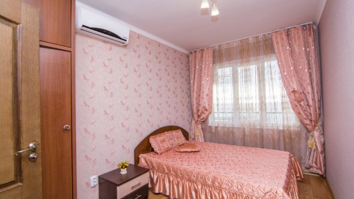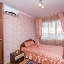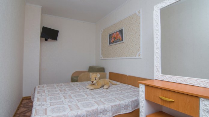 Комфортабельный номер для двоих. В номере спутниковое телевидение, кондиционер, шкаф-купе, туалетный столик, кровать.