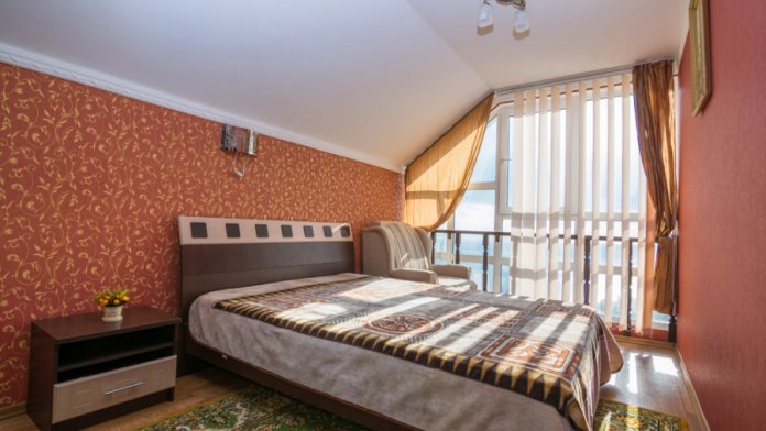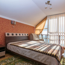 Номер находится на втором этаже трехэтажного коттеджа. Просторный, светлый, двухкомнатный номер с балконом и панорамным видом на море. Четыре спальных места: отдельная спальня с 2-спальной кроватью и гостиная с раскладывающим диваном.