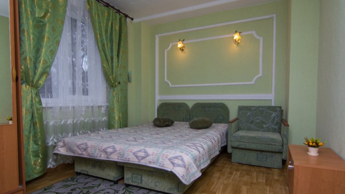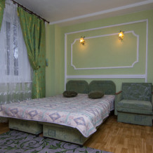 Находится на первом этаже трехэтажного коттеджа. Большой, светлый, уютный номер. Телевизор (спутниковое ТВ), шкаф для одежды, санузел.