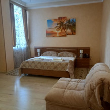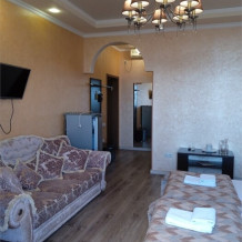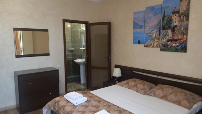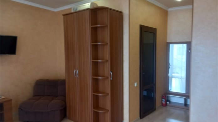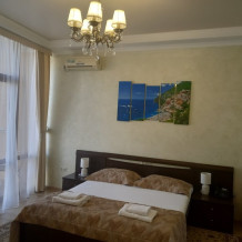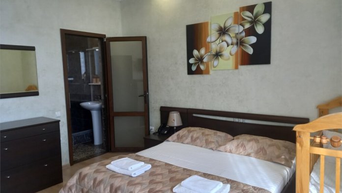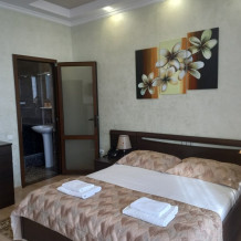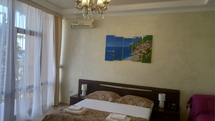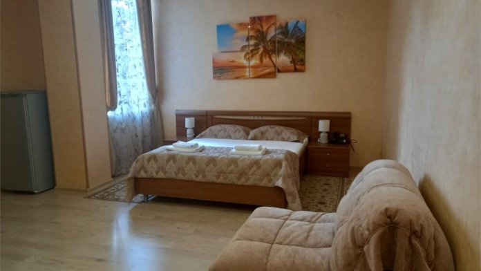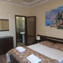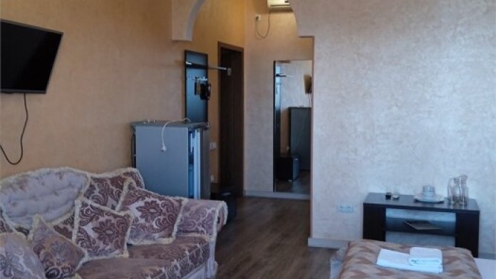 К услугам гостей комфортабельный однокомнатный номер полулюкс с выходом на террасу и видом на море. В номере есть все необходимое для комфортного проживания - кондиционер, кабельное телевидение, холодильник, санузел с душевой кабинкой , бесплатными банными принадлежностями и феном. Гостям предоставляются тапочки и халат. А также гардероб, и на окнах москитные сетки.