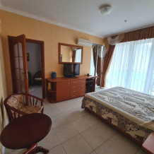 В номере: 2 кондиционера, 2 холодильника, 2 ж/к телевизора, спутниковое тв, набор посуды, микроволновая печь, чайник, тостер, фен, утюг, гладильная доска, сушилка для одежды, мини-сейф, аптечка, карты, 100% хлопковое постельное белье и набор полотенец, 2 ванные комнаты.