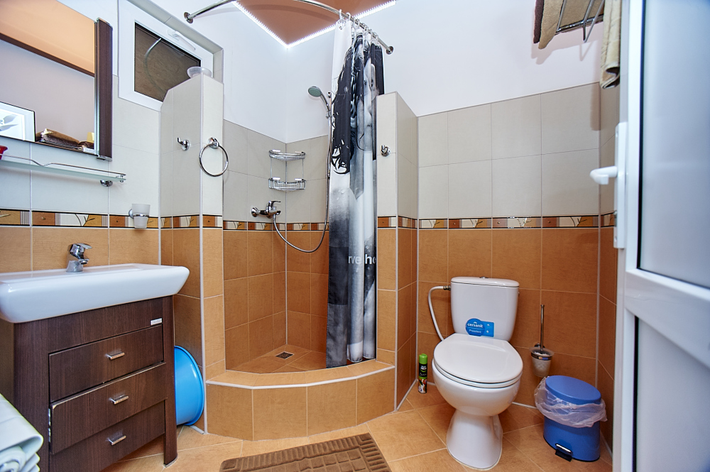 Номер оборудован всем самым необходимым: телевизор (спутниковое телевидение), кондиционер, холодильник, электрочайник, набор посуды, душ (холодная/горячая вода круглосуточно), туалет, фен, WI-FI интернет. На уютном балконе стол со стульями.