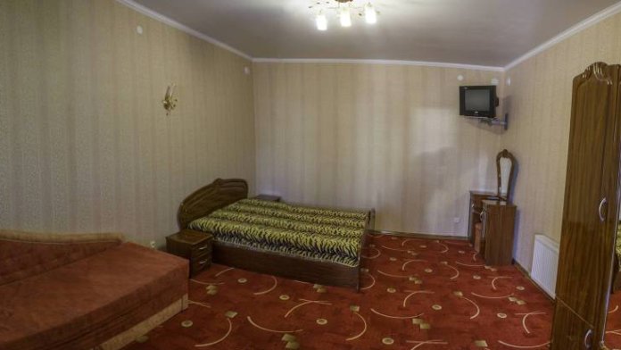 Каждый номер оснащен персональной кухней, на кухне: холодильник, газовая плита, кухонная мебель, посуда. В номерах: санузел, в спальней комнате современная мебель, двуспальная кровать, тахта, прикроватные тумбочки, туалетный стол, шифоньер, телевизор, кондиционер, а также балкон с видом на горы Чатыр-даг и Демерджи. На всей территории поддерживается Wi-Fi. Имеется двухкомнатный частный сектор на первом этаже, со своим двориком, кухней, санузлом, интернетом и стиральной машинкой.