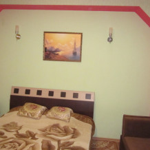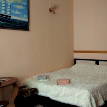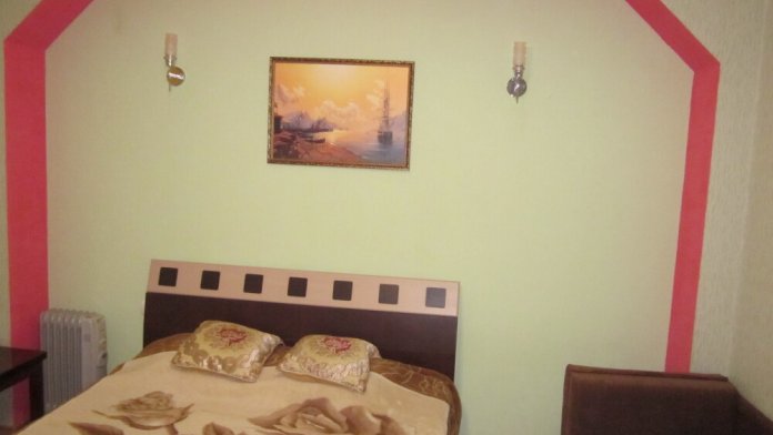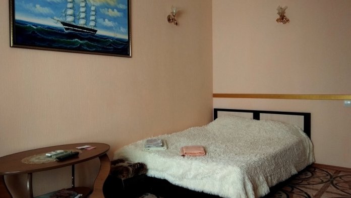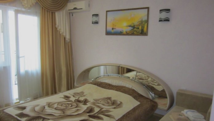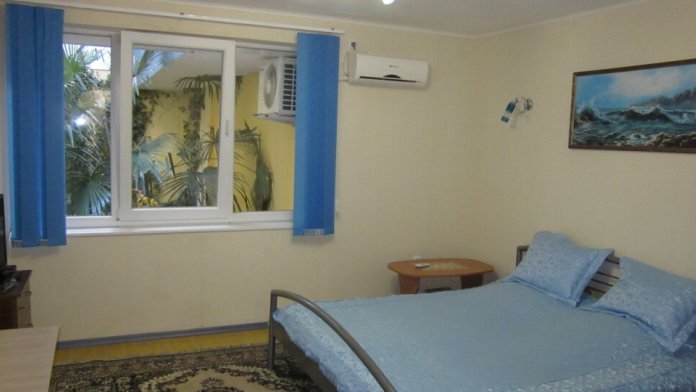 Южный номер с балконом на 2-3 человека, но моря почти не видно. В номере: кровать и диван раскладной, свч-печь, кондиционер, телевизор, холодильник, чайник.