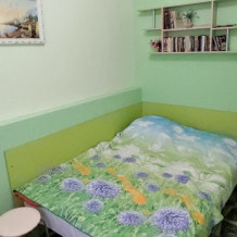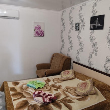 Семейный номер с окном во двор, рассчитан на 2-3 человека. В номере есть санузел, кондиционер, телевизор, своя небольшая кухня и обеденный стол. Подходит для семьи с детьми от 3 лет.