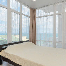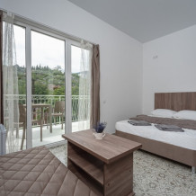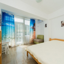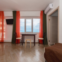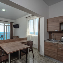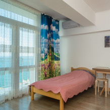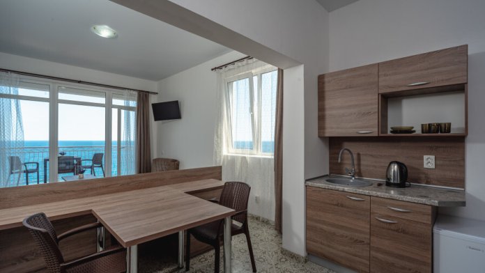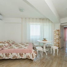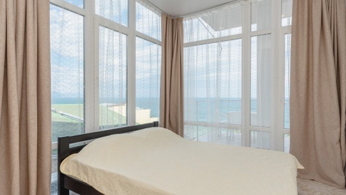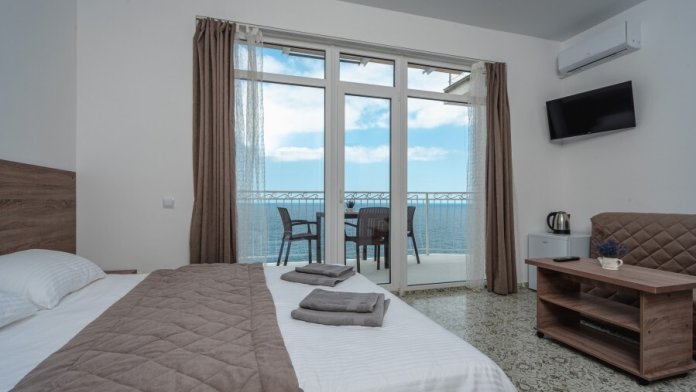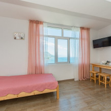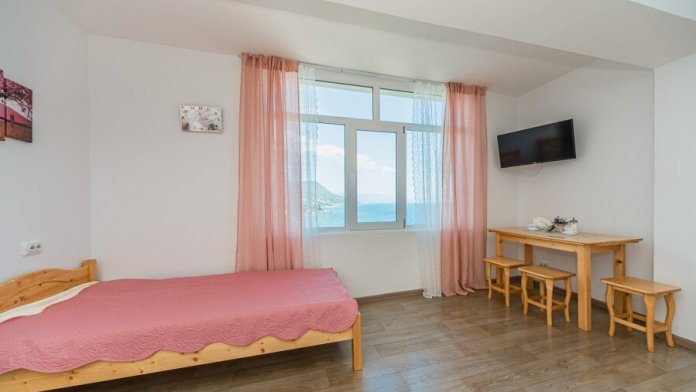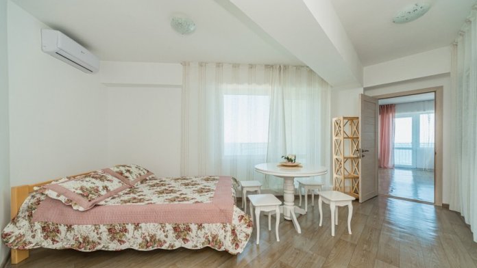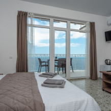Двухкомнатный номер, вмещающий до 5-х гостей. Из окон и с балкона открываются шикарные виды на морские просторы.
