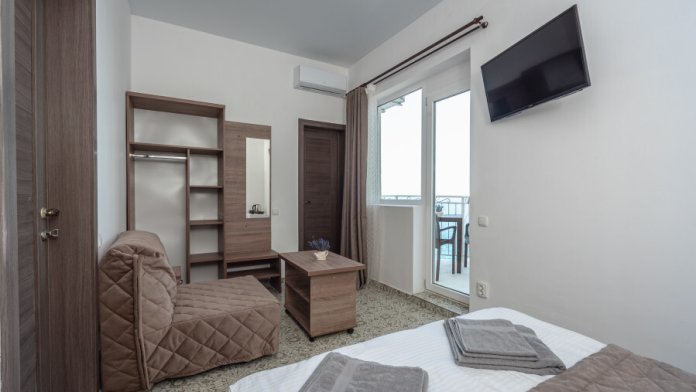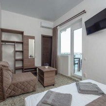 Двухкомнатный семейный номер, вмещающий до 4х гостей. Из окон и с балкона открываются шикарные виды на морские просторы.