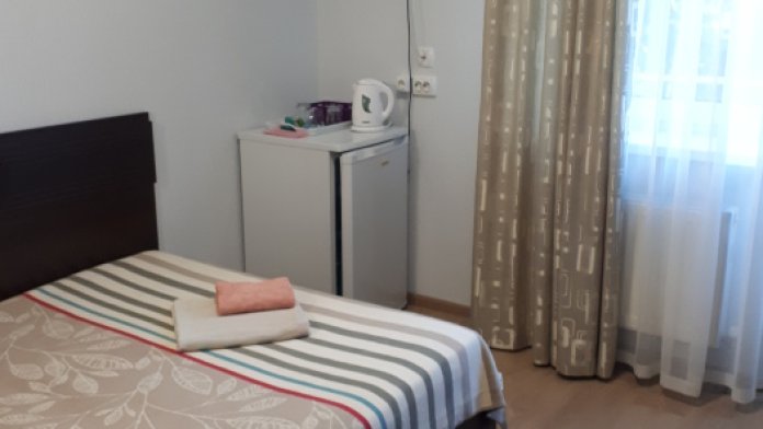 В номере 2х спальная кровать с ортопедическим матрасом. Максимальная вместимость номера 2 человека. В номере есть балкон.