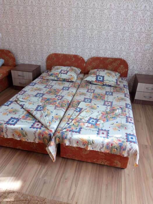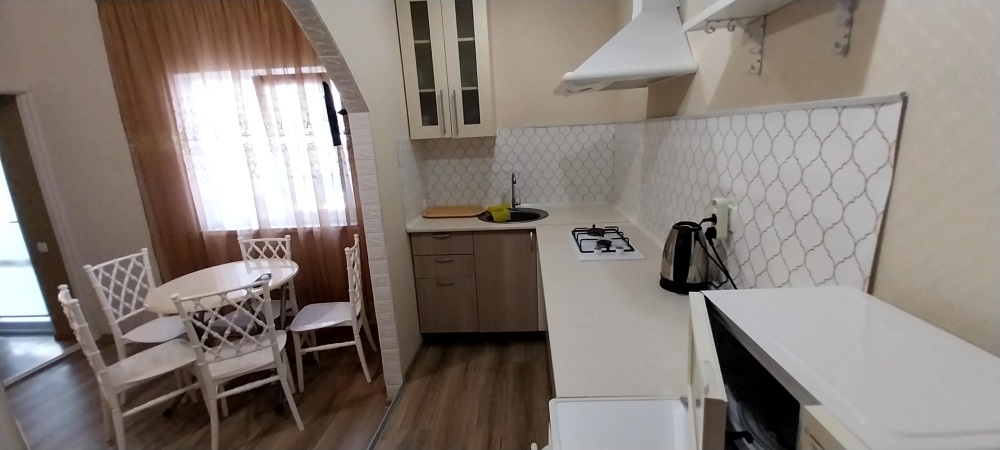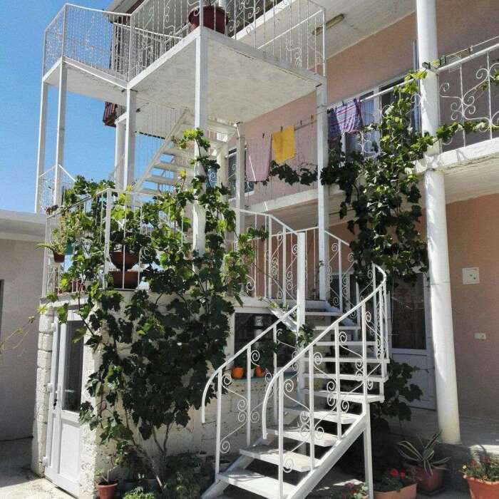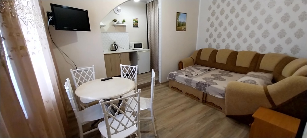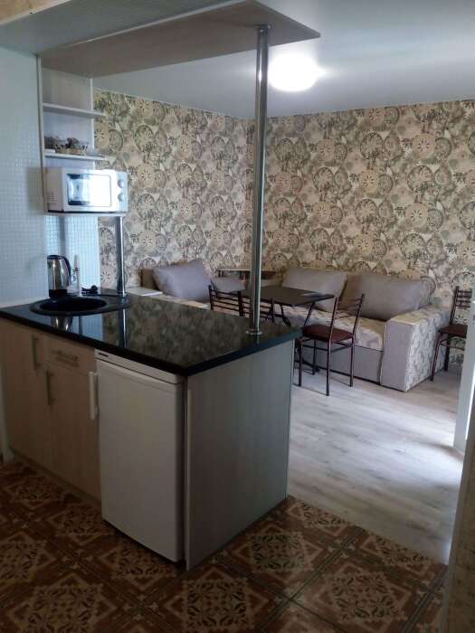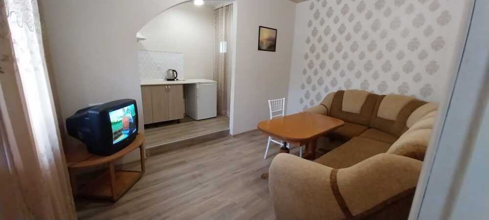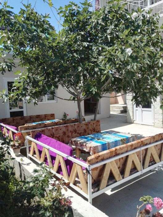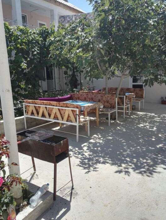 Двор дома оборудован беседкой с мангалом и удобными топчанами. Около входа в комнаты имеется отдельное местечко для вечернего отдыха. В комнатах есть все необходимое для проживания и приготовления пищи.