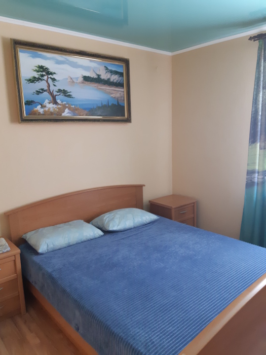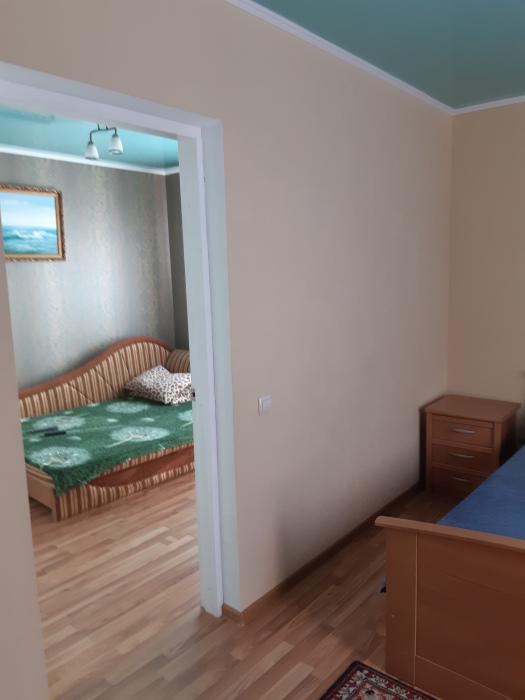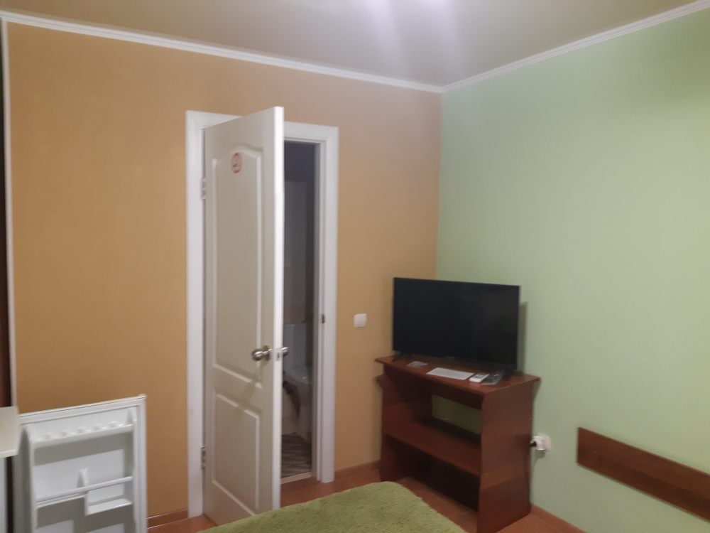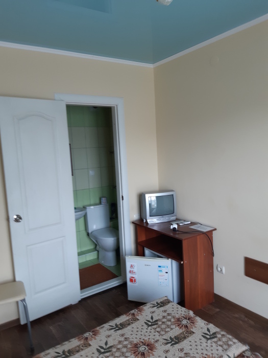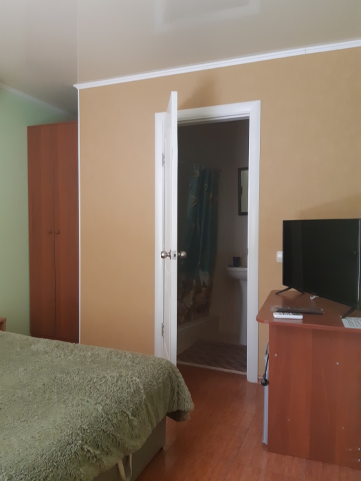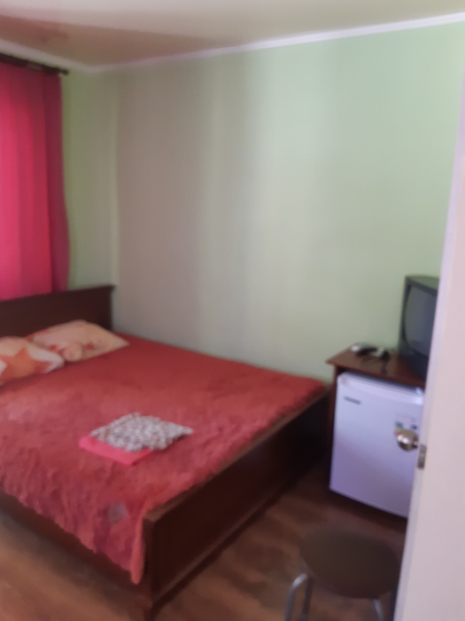 В номере одна двуспальная кровать и одна односпальная. Все номера со всеми удобствами.