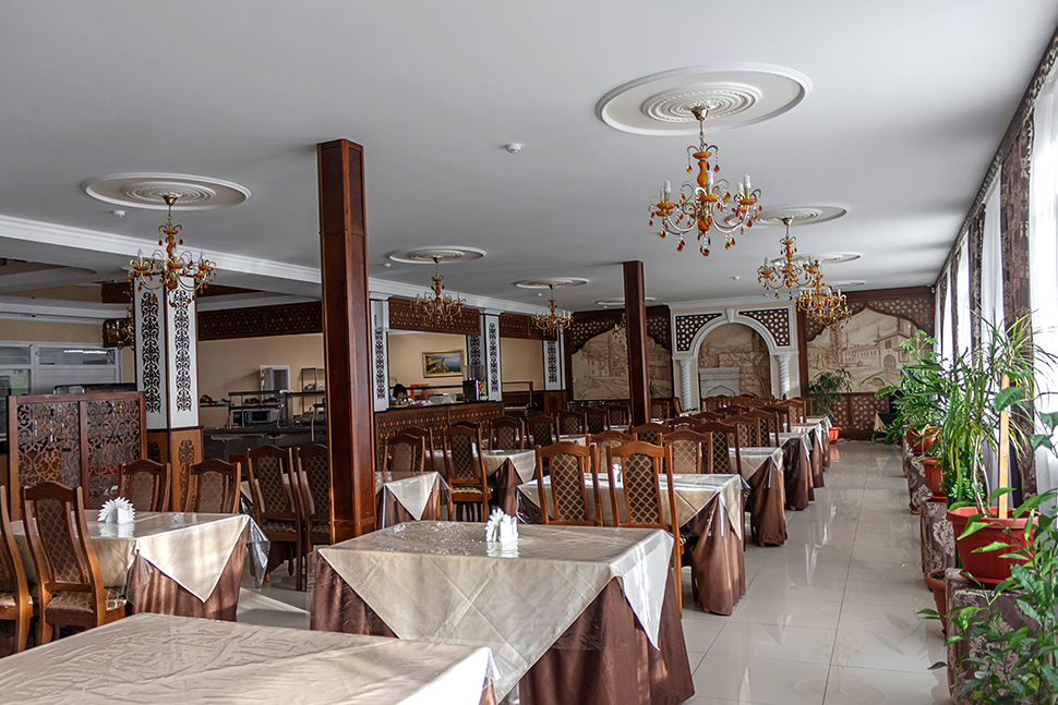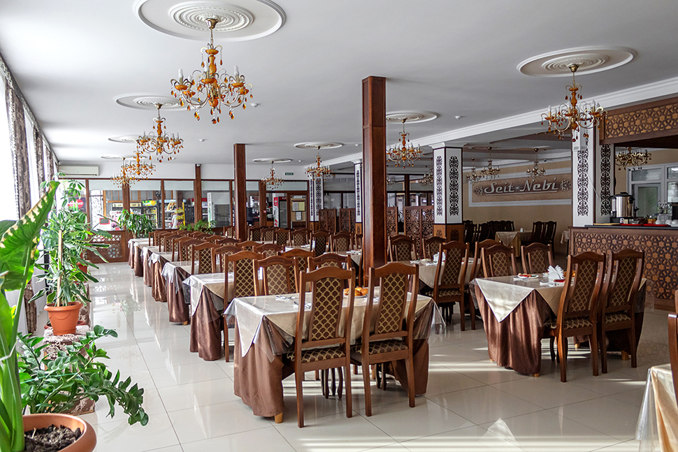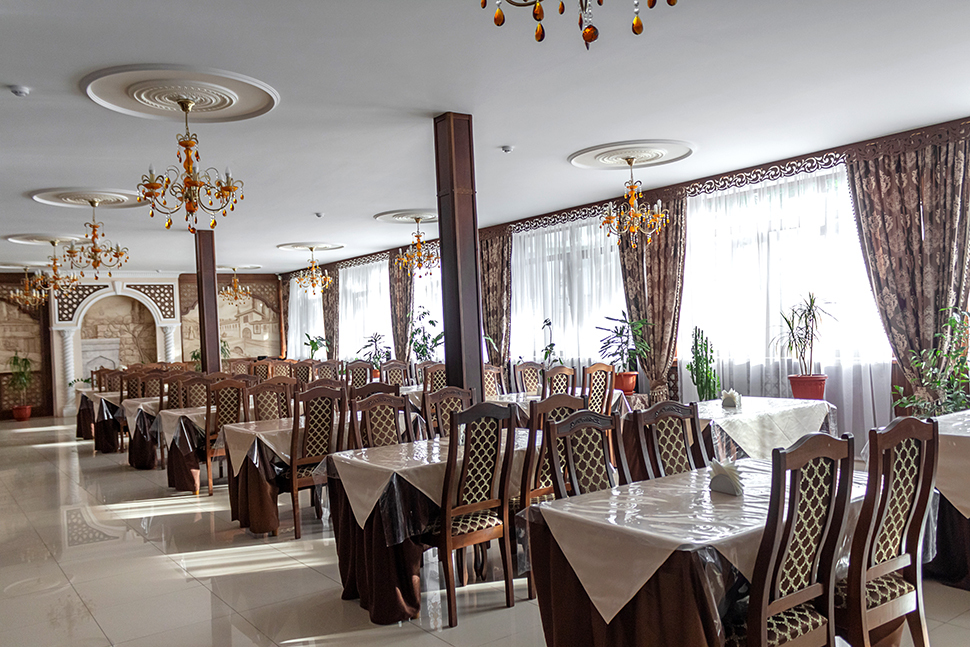 На территории базы отдыха к услугам наших гостей большая благоустроенная столовая и мини-маркет. Мы предлагаем 3-х разовое сбалансированное комплексное питание, или же Вы сможете заказать любое блюдо из ассортимента меню. Наш шеф-повар предлагает Вам блюда европейской и восточной кухни, а также изысканные шедевры из морепродуктов. Наша национальная кухня славится богатым выбором шашлыков, пловом, узбекскими лепешками.