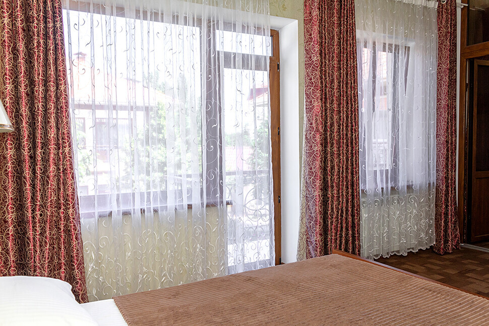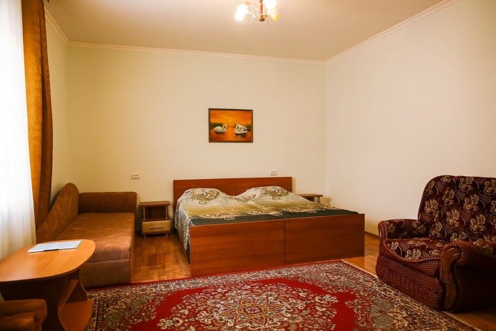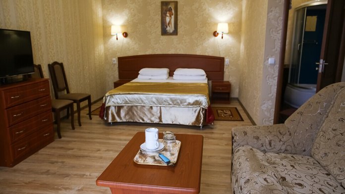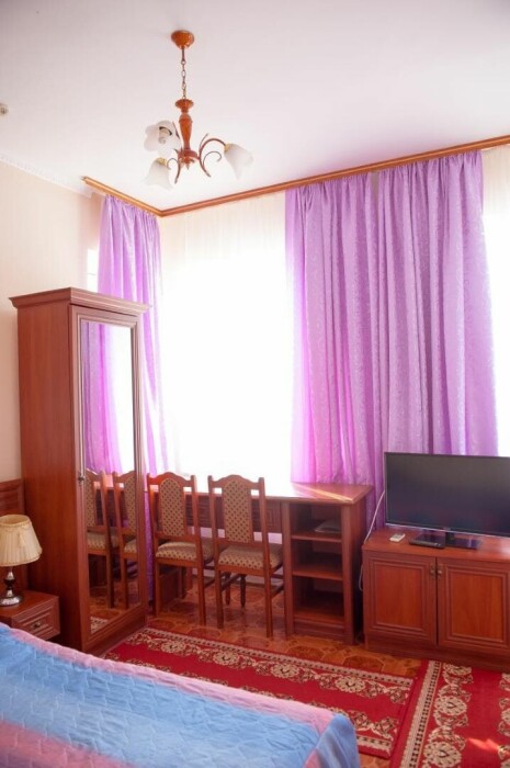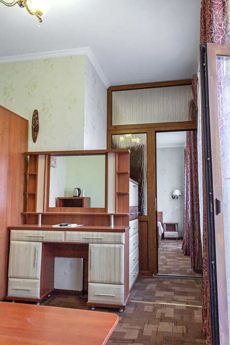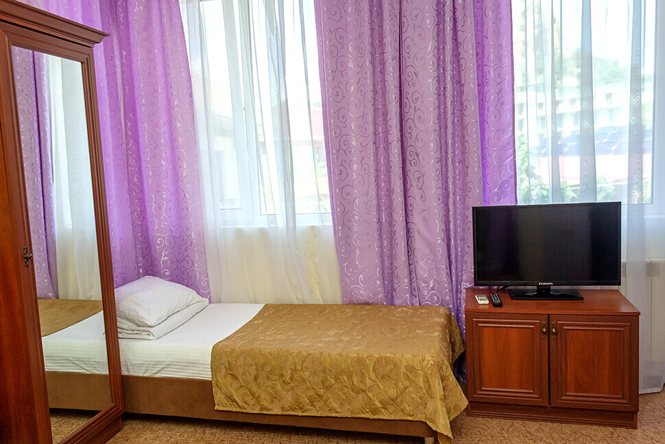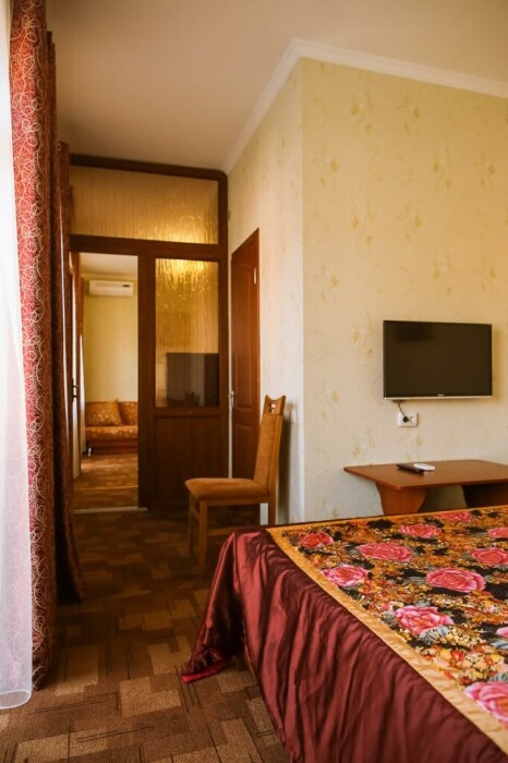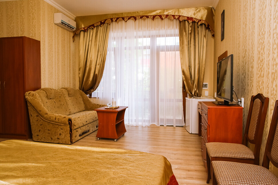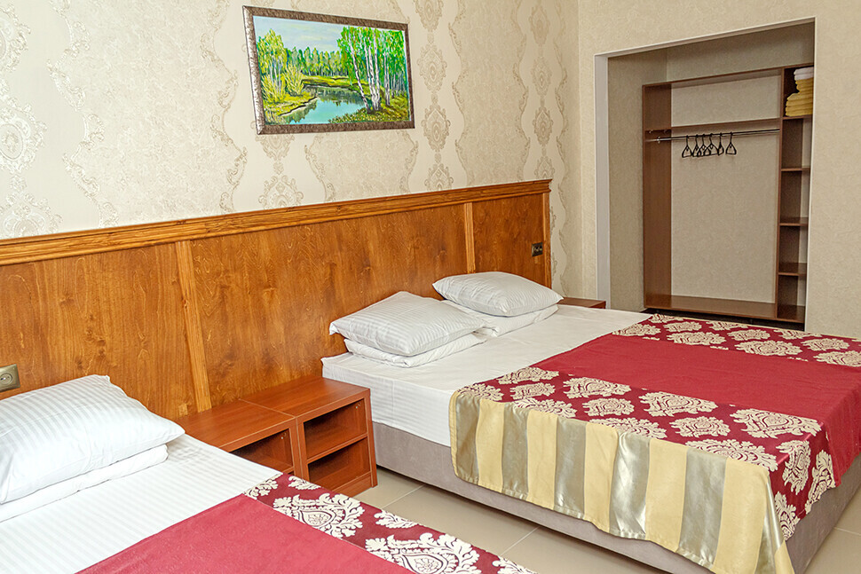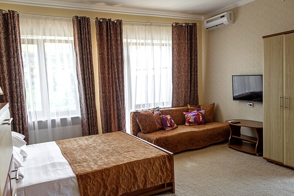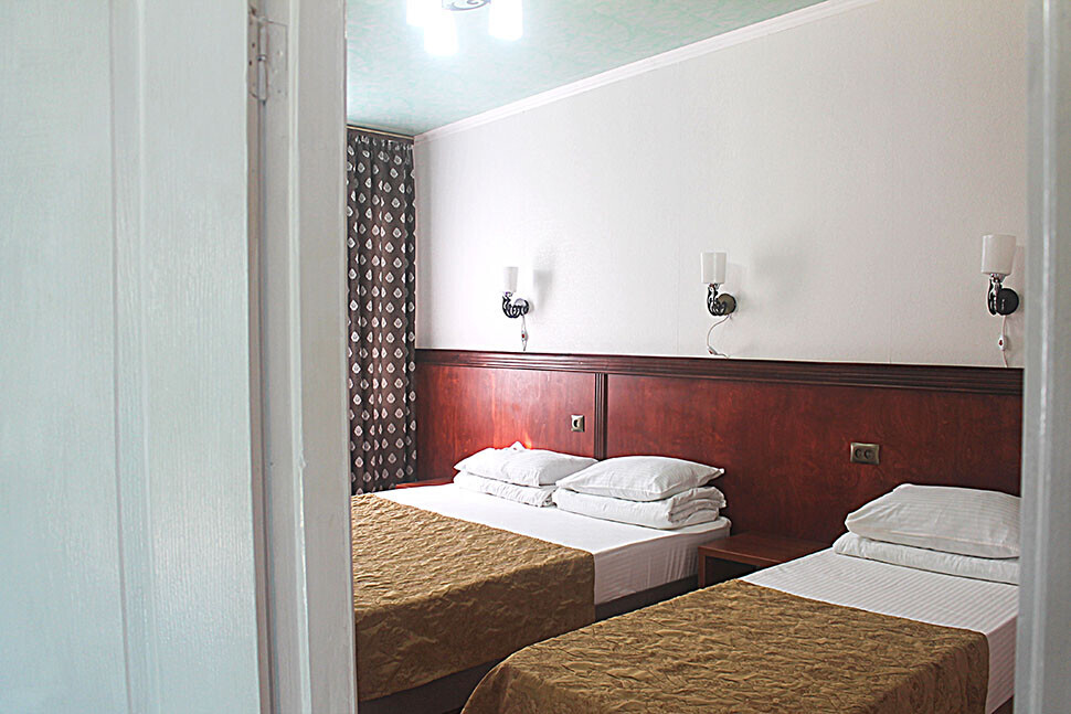 В нашем номерном фонде представлены: стандартные номера (2-3-местные), двухкомнатный номер на 4-5 человек, номера Полулюкс (2-3-местные) и Люкс (2-3-местные). В каждом номере есть все необходимое для комфортного проживания: современная мебель, телевизор со спутниковым ТВ, кондиционер, холодильник, отдельный санузел.