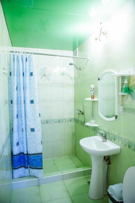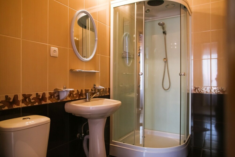 В каждом номере: санузел с умывальником, душем и унитазом. В номере есть чайник, минимальный набор посуды, фен.