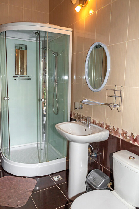 В каждом номере: санузел с умывальником, душем и унитазом.